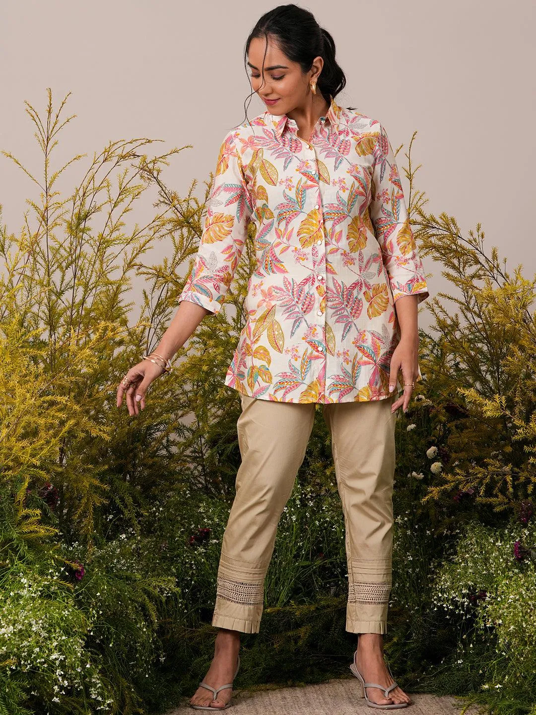 White Printed Silk Blend Straight Tunic
